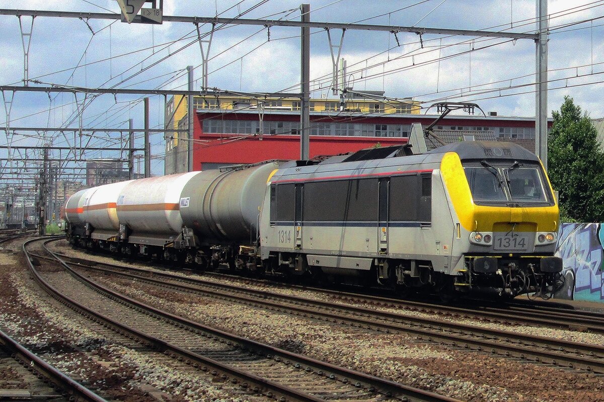 Vom Bahnsteig wurde am 18 Augustus 2024 ein Kesselwagenzug mit Lineas 1314 beim Passage durch Mons fotografiert.
