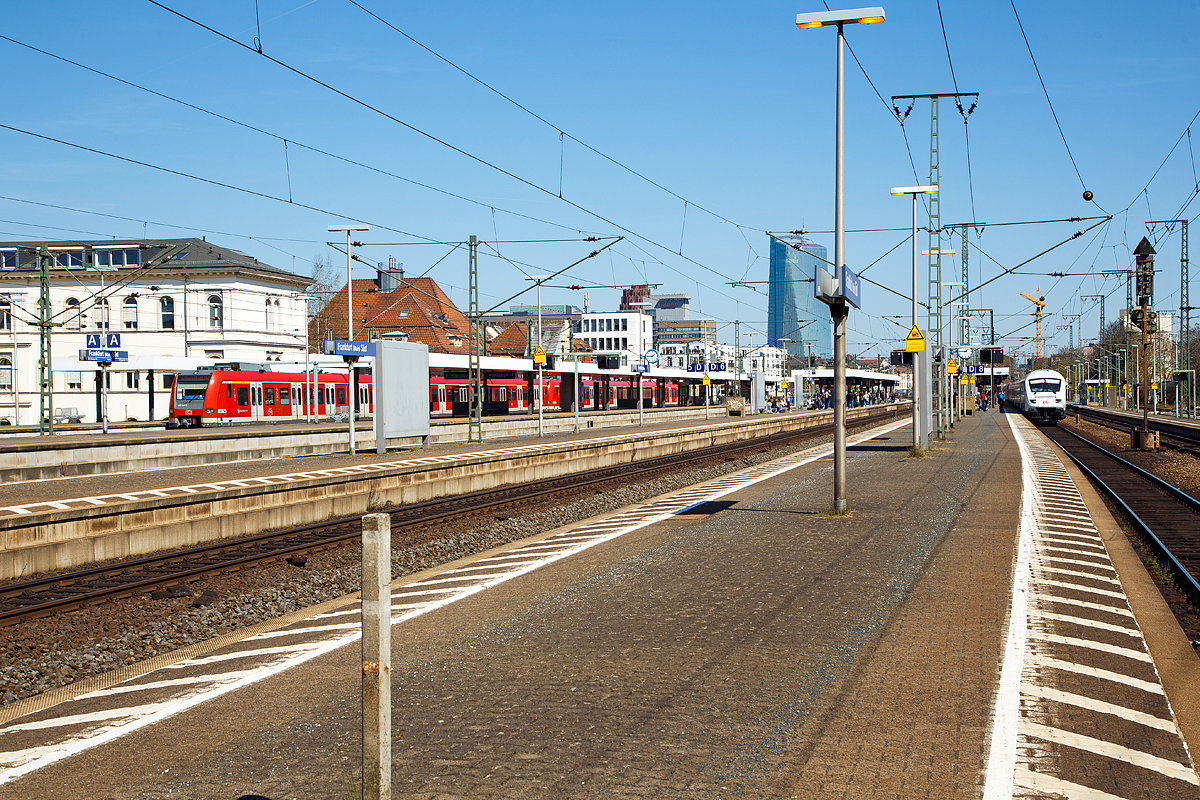 Der ICE 4, Tz 9018 "Freistaat Bayern" fährt am 17.04.2023 durch den Bahnhof Frankfurt am Main Süd,