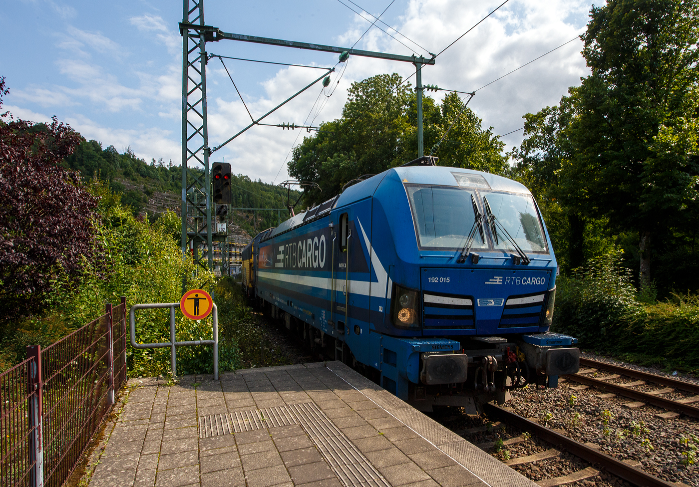 Wir sind gerade von Köln am mit dem RE 9 in Betzdorf/Sieg angekommen und ausgestiegen, da werden wir von dem Gegenzug überrascht. Die an die RTB Cargo (RATH Gruppe/Rurtalbahn) vermietete, SIEMENS Smartron 192 015-6 (91 80 6192 015-6 D-NRAIL) der northrail GmbH (Hamburg) (finanziert durch die Paribus Rail Portfolio III GmbH & Co. KG, Hamburg), fährt am 18 Juni 2025 mit einem langen geschlossen Doppelstock- Autotransportzug der ARS Altmann AG (mit Wagen der Gattung Hccrrs), durch Betzdorf/Sieg in Richtung Köln.