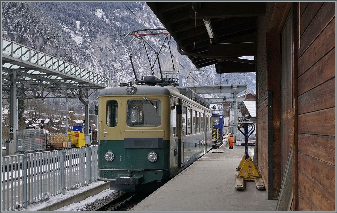 Ein etwas anderer Blick auf die WAB He 2/2 N° 52 in Lauterbrunnen.