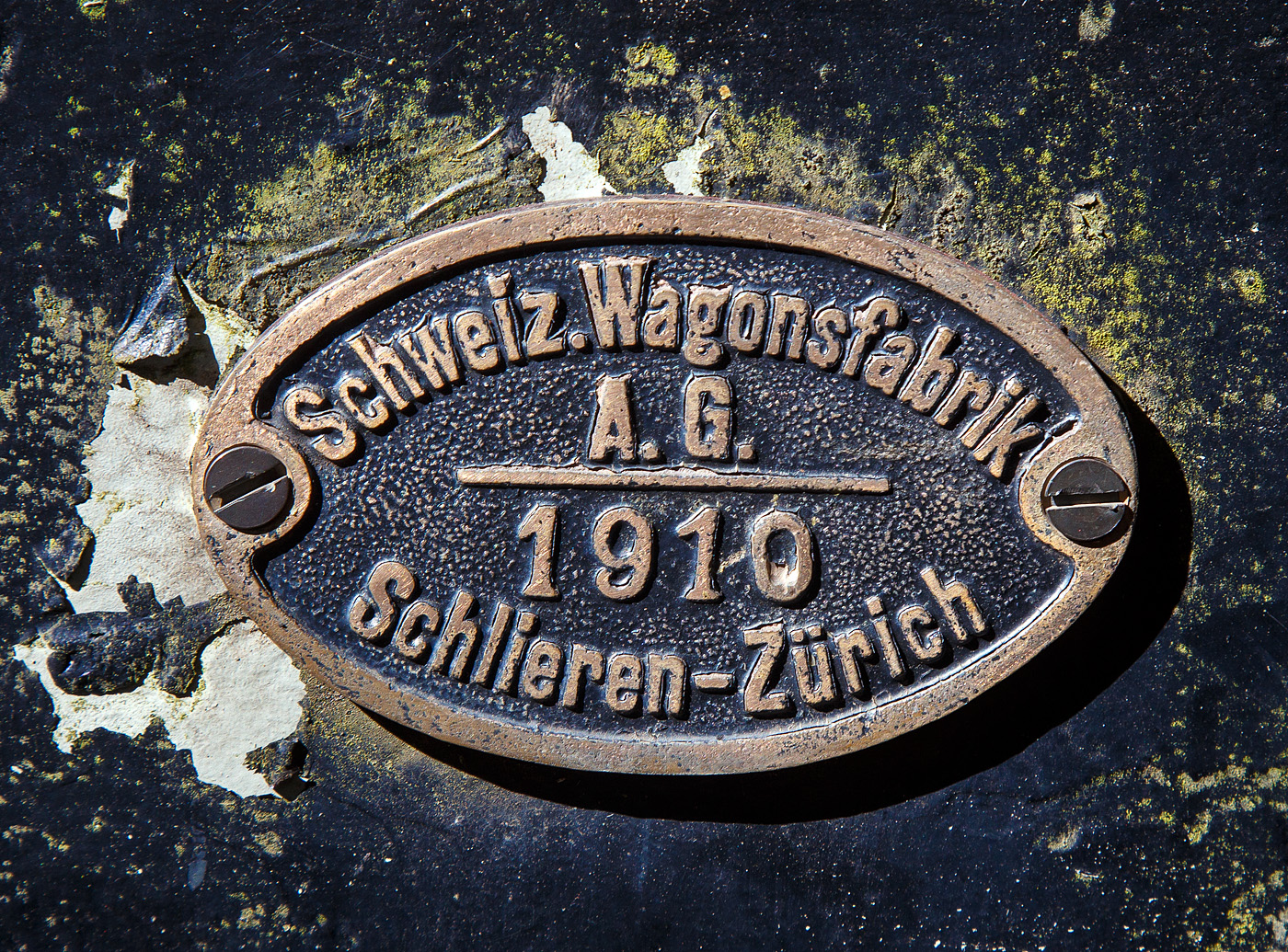 Die Beschilderung der elektrischen Zahnradlokomotive BGV He 2/2 2, später BVB He 2/2 2 "La Grisette" der Museumsbahn Blonay–Chamby am 09 September 2023 im Museum Chaulin. Hier mit dem Schild der ehemaligen Chemin de fer électrique Bex = Gryon = Villars (BGV). Und den Fabrikschildern der CIEM - Compagnie de l’industrie électrique et mécanique (ab 1918 SAAS) und der SLM - Schweizerischen Lokomotiv- und Maschinenfabrik in Winterthur (hier in Französisch).