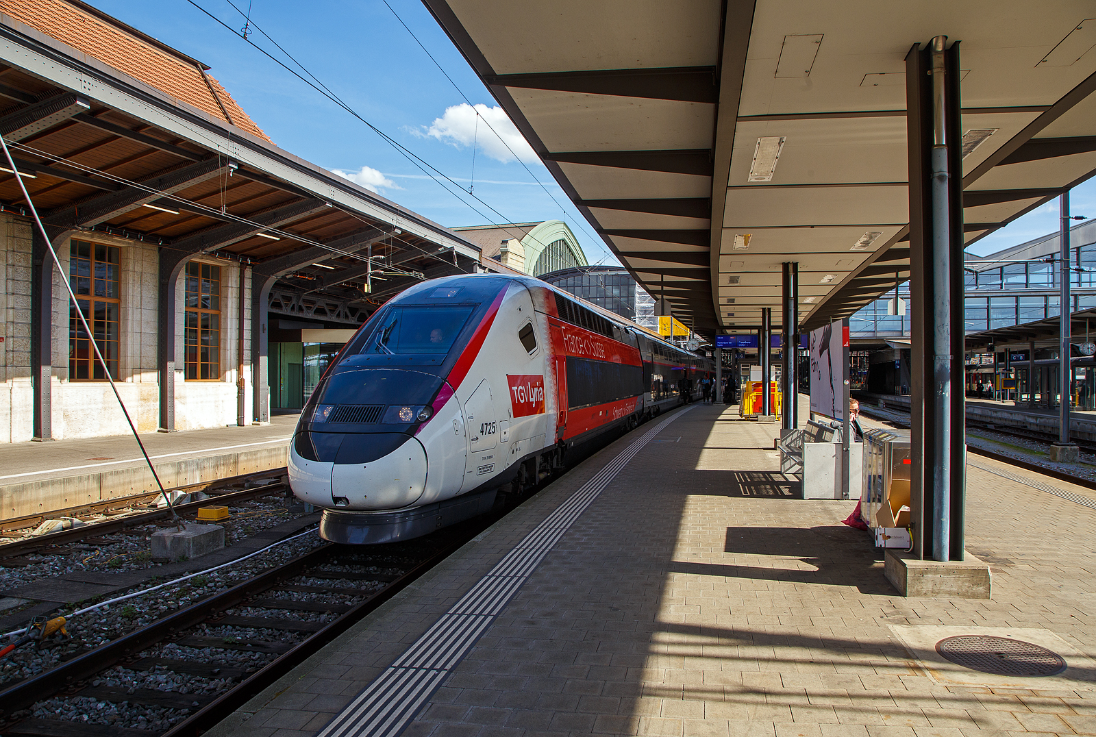 Da Lyria ihre Flotte auf den Fahrplanwechsel von 19 POS auf 15 Euroduplex TGV-Züge umstellt, werden die POS ab Fahrplanwechsel in ein neues Einsatzgebiet versetzt und dazu bereits farblich angepasst: Der "InOui" TGV 4404 ist als TGV Lyria 9261 von Paris an seinem Ziel in Lausanne angekommen und fährt nun bis zur Bereitstellung für die Rückfahrt in die Abstellgruppe.