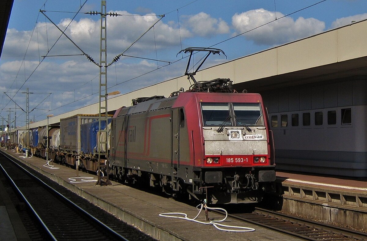 Vorbei sind die Tage von Croossrail TRAXXen -am 14 September 2011 steht Crossrail 185 593 in Basel Badischer Bahnhof mit ein KLV abfahrtbereit in die Schweiz.
