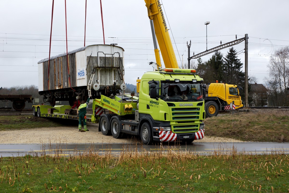 Beim vor einigen Tagen gefunden Archivbild vom 4. Oktober 1944 von Büren an der Aare fiel mir der im Bild zu sehenden Gütewagen auf. Nach einigen Nachforschungen und Informationen entpuppte sich der besagte Wagen als italienischer "Spitzdachwangen", wie sie bis in die achtziger Jahre zum Transport von Gemüse und Früchten in und durch die Schweiz kamen.