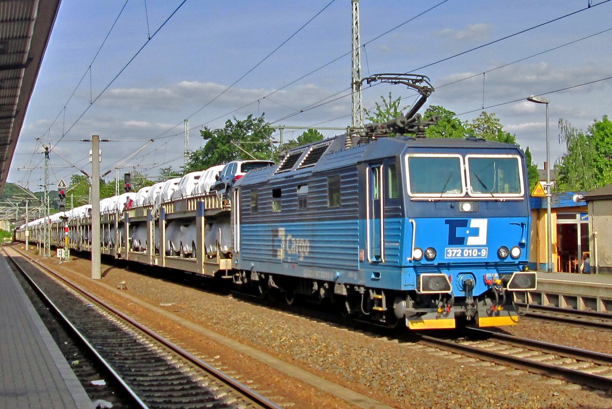 BLG Autotransportzug mit CD Cargo 372 007 durchfahrt Decin hl.n. am 22 Mai 2015.