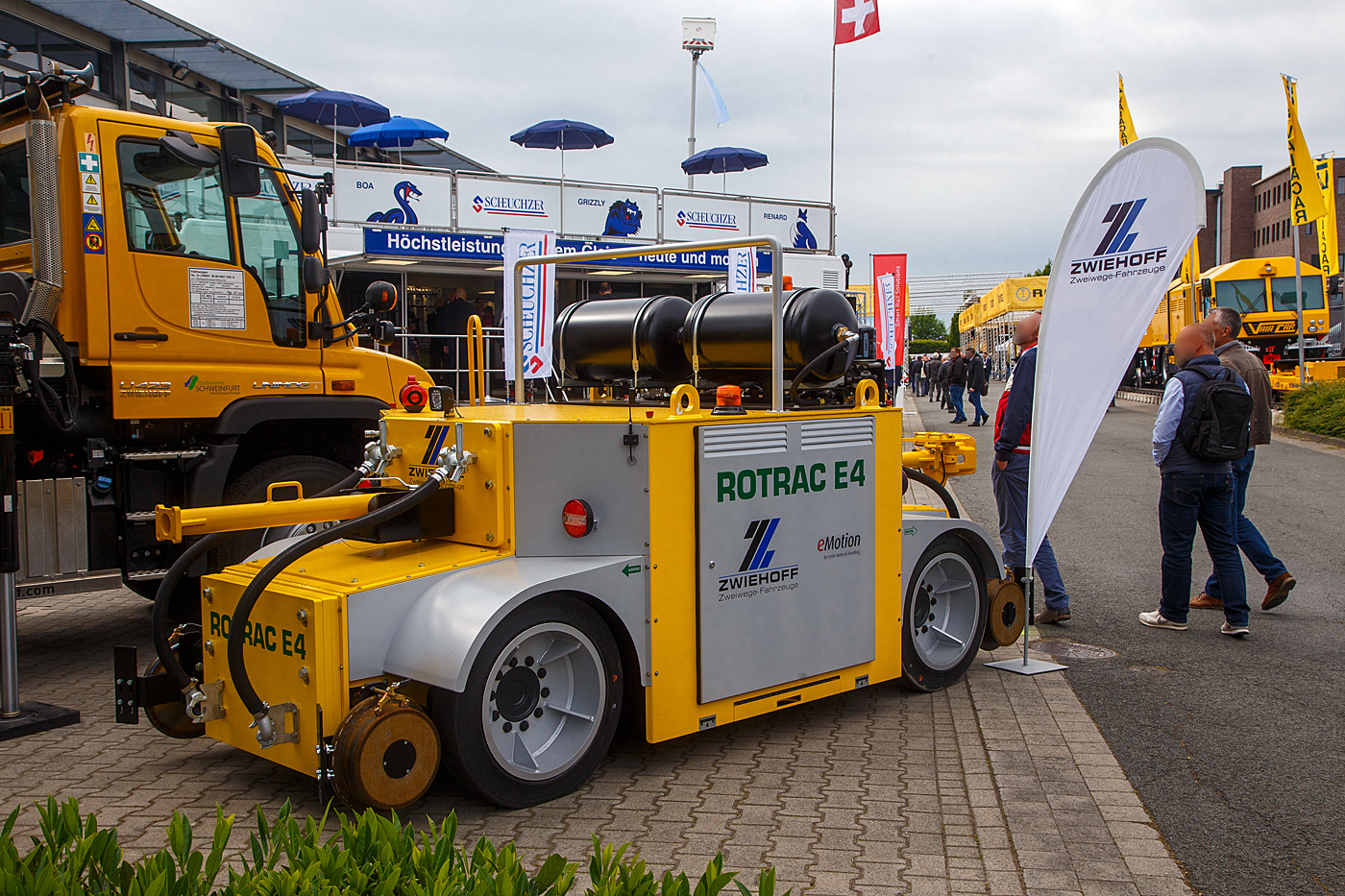Nach dem ich im Netz nichts gefunden habe, schrieb ich eine Mail an den Hersteller, der mir dankenderweise die Technische Daten mailte. Das Fahrzeug dient hauptsächlich dazu E-Triebzügen der BR 442 (Bombardier Talent 2, auch Hamsterbacke genannt) in der Waschanlage zu bewegen, da dort eine Oberleitung wohl sehr ungünstig ist (Strom und Wasser vertagen sich bekanntlich erweise nicht).