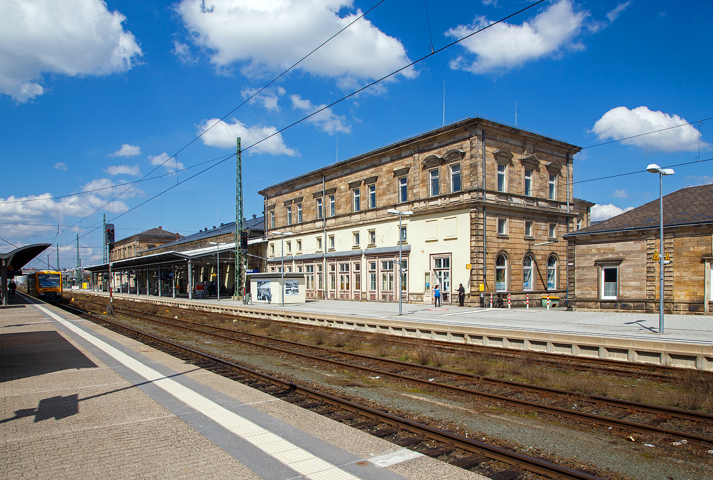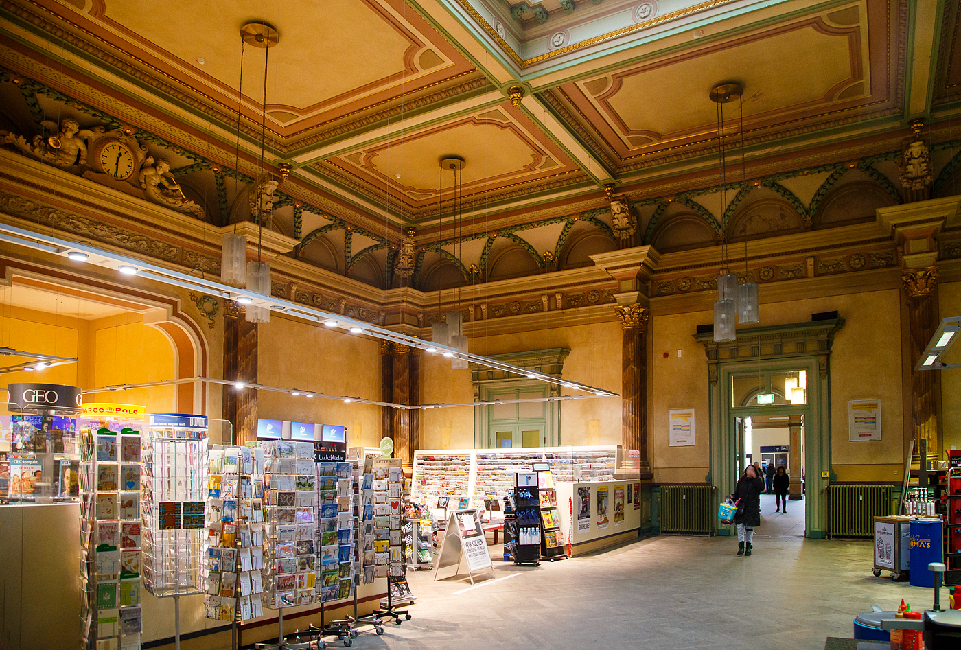 Die Uhr (wohl aus der Entstehungszeit) im imposanten und prunkvollen (ehemalige) Königssaal in der Mitte des Empfangsgebäudes vom Hbf Hof am 17.04.2023. Aber diese alte Uhr geht noch genau.