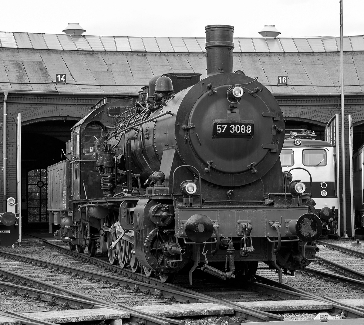 Die preuß. G10 Schlepptender-Güterzuglokomotive 57 3088 (ex G10 6011 Halle, ex DB 057 088-7) am 30.08.2015 im Südwestfälische Eisenbahnmuseum in Siegen.