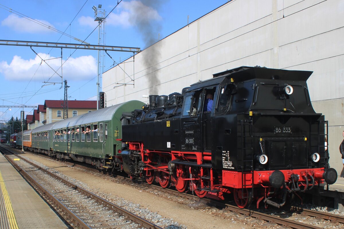 Am Nachmittag von 27 September 2025 steht 86 333 der Pressnitztalbahn in Benesov u Prahy während das Spektakel STEAM56.
