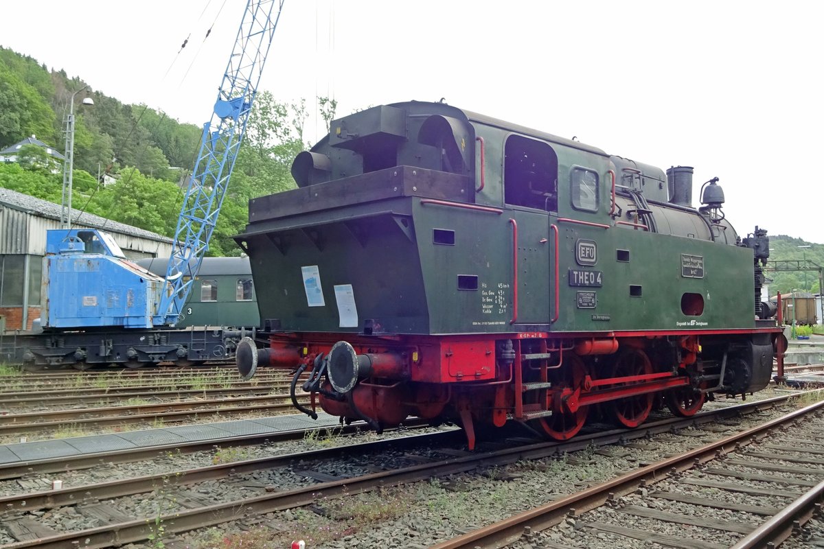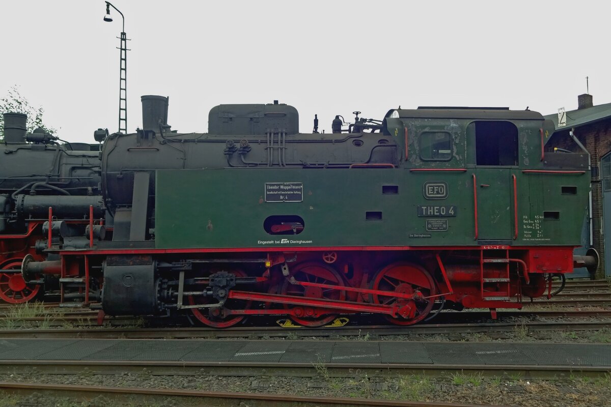 Die Dampflokomotive D8 der Hespertalbahn e. V., eine Krupp Knapsack, am 18 Juli 2015 beim Lokschuppen in Essen-Kupferdreh.
