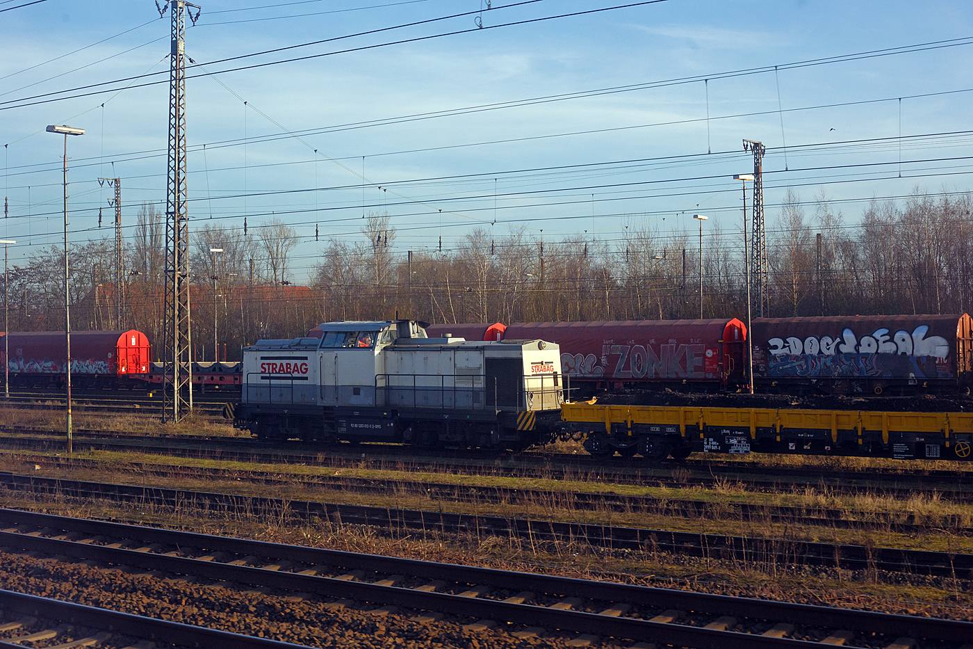 Die V 160.4 / 203 109-4 (92 80 1203 109-4 D-HVLE) zurzeit (seit März 2021) als BUG 203-BUG-07 an die BUG Vermietungsgesellschaft mbH (Hoppegarten) vermietet, ist am 22.11.2021 in der Abstellgruppe in Kreuztal mit einem Bauzug abgestellt.