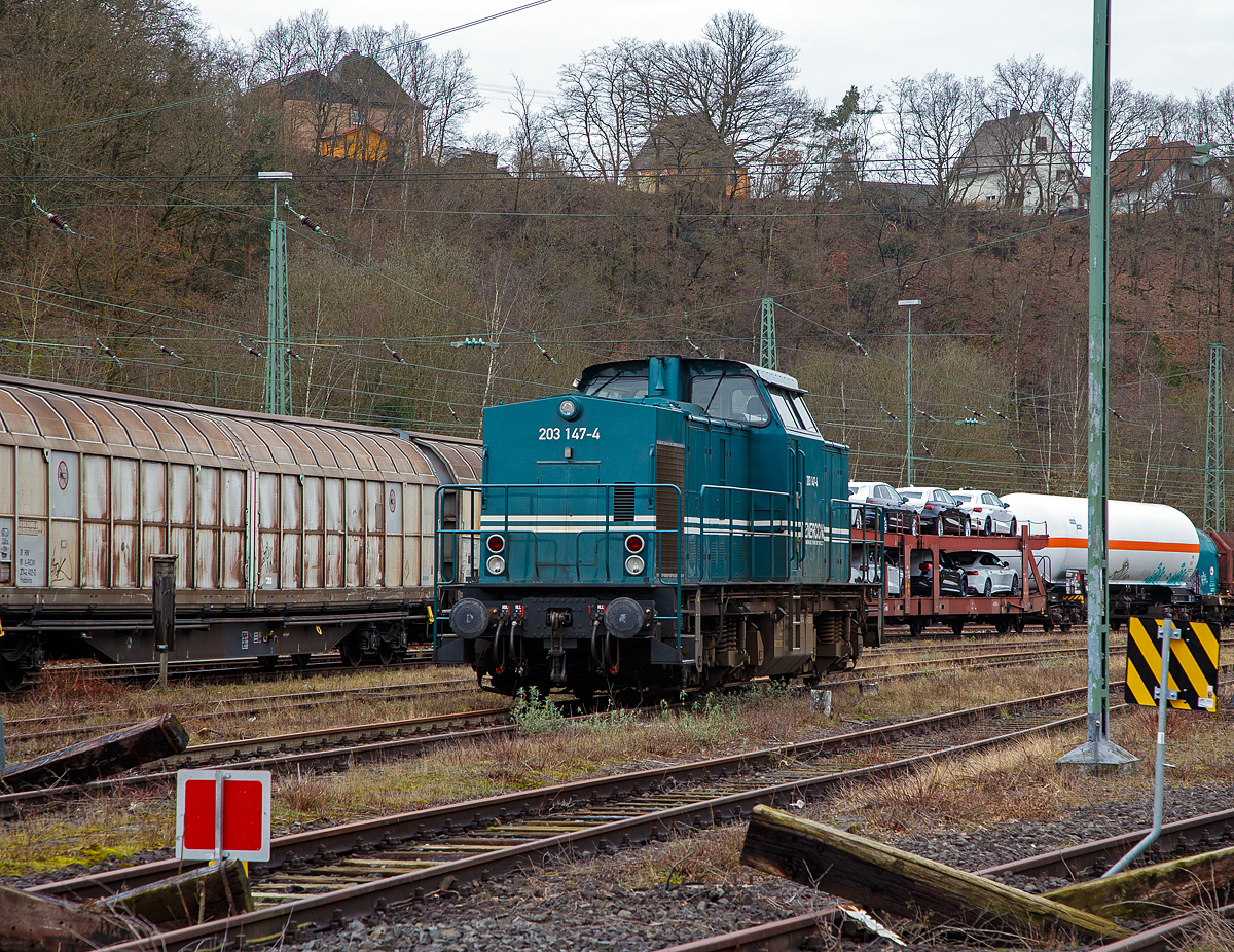Hinten ist die 203 147-4 (92 80 1203 147-4 D-EGOO) der e.g.o.o. Eisenbahngesellschaft Ostfriesland-Oldenburg mbH, ex DB 202 357-0, ex DR 112 357-9, ex DR 110 357-1, abgestellt.