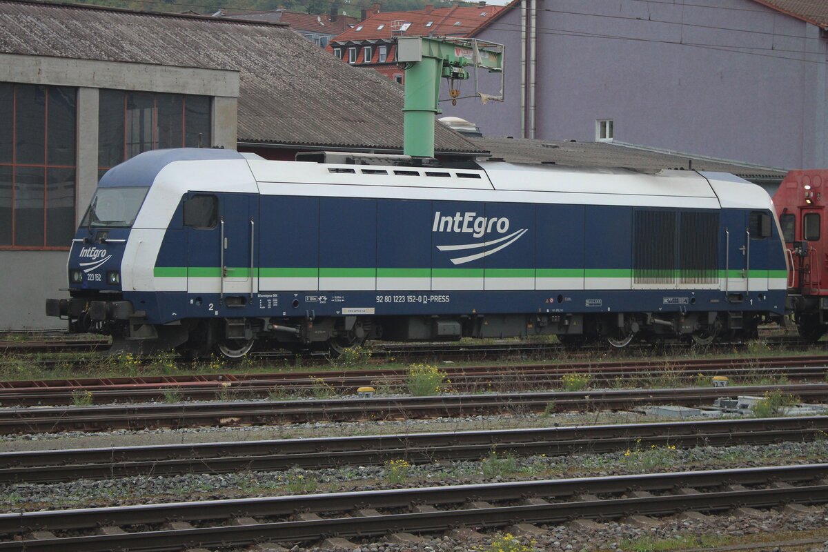 IntEgro 223 152 steht am grauen 30 September 2025 in Würzburg Hbf.