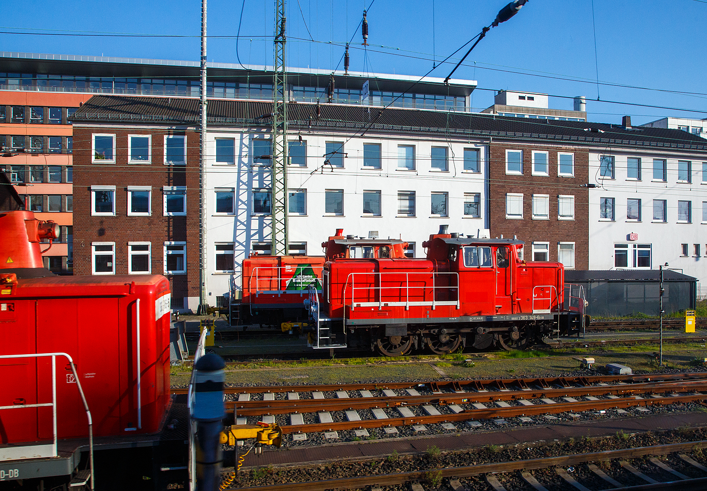 Die an die DB Cargo AG vermietete V 60 – 363 698-2 alias 363 029-9 (98 80 3363 698-2 D-PRESS) der PRESS - Eisenbahnbau- und Betriebsgesellschaft Pressnitztalbahn mbH (Jöhstadt), ex DB V 60 698, hat am 06.12.2022 die DB 101 041-2 von der Abstellgruppe geholt und im Hauptbahnhof Leipzig an einen IC herangeschoben.