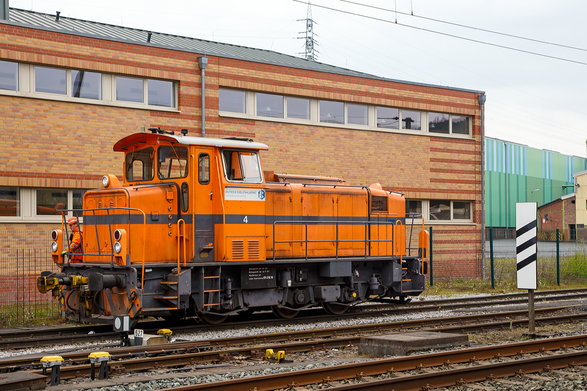 Die Lok ist eine MaK G 500 C und wurde 1975 unter der Fabriknummer 500074 (die letzte dieser Serie) gebaut und als Lok 72 an Krupp Stahl AG, Werk Duisburg-Rheinhausen geliefert. Ein Umbau auf Funksteuerung erfolgte 1979. Durch die anstehende Schließung des Standortes Rheinhausen kam die Lok am 06.11.1987 hier zum damals zur Krupp Stahl AG gehörende Werk Siegen-Geisweid.