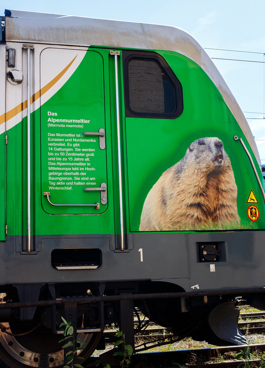 Die Rem 487 001-0 „Murmeltier“ (91 85 4487 001-0 CH-SRA) der Salzburger Eisenbahn Transportlogistik (SETG), ex SRT Rem 487 001, ex BTK 187 010, ist am 07 September 2024 beim Hauptbahnhof Siegen (D) angestellt.