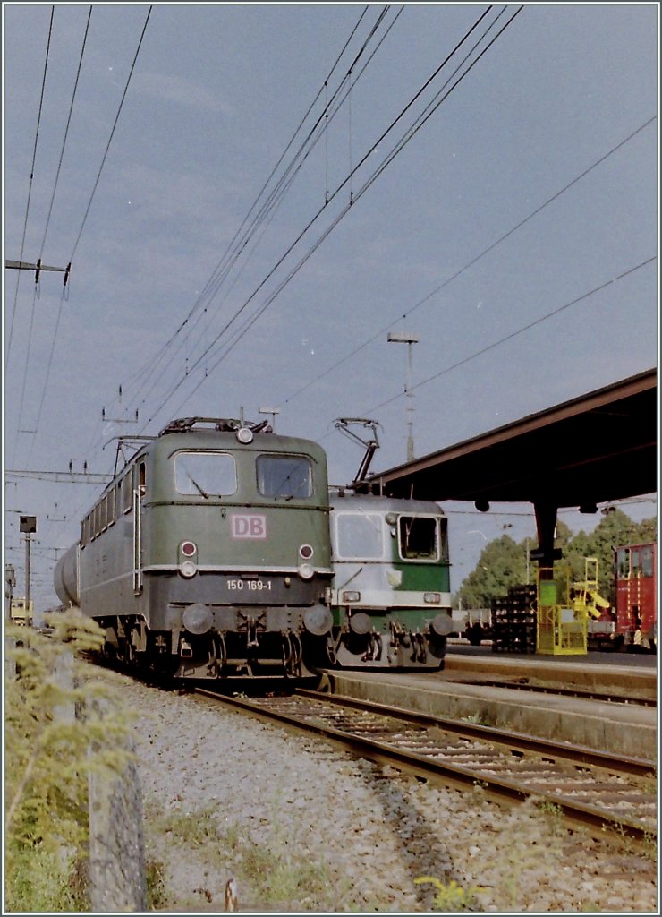 Damit die E50 091 / 150 091-7 aus Koblenz etwas Gesellschaft bekommt: Die DB 150 169-1 in Weinfelfden. 26.09.1996 (Gescannts Negativ)
