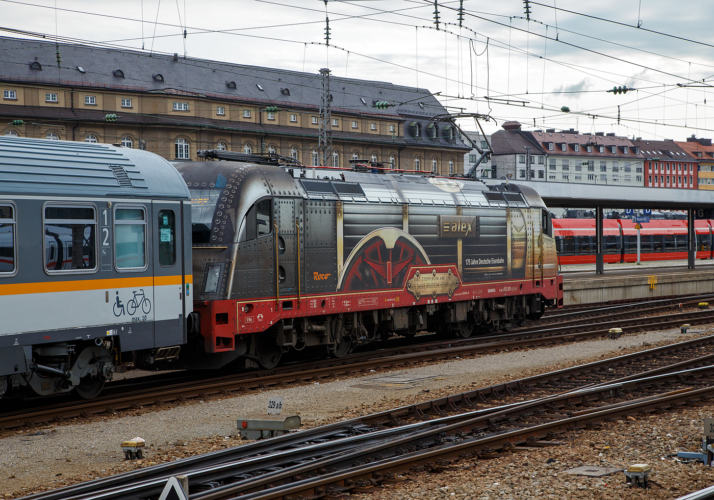 Am trüben 27 Mai 2022 wartet ALEX 183 002 in Regensburg Hbf auf deren Zug nach München.
