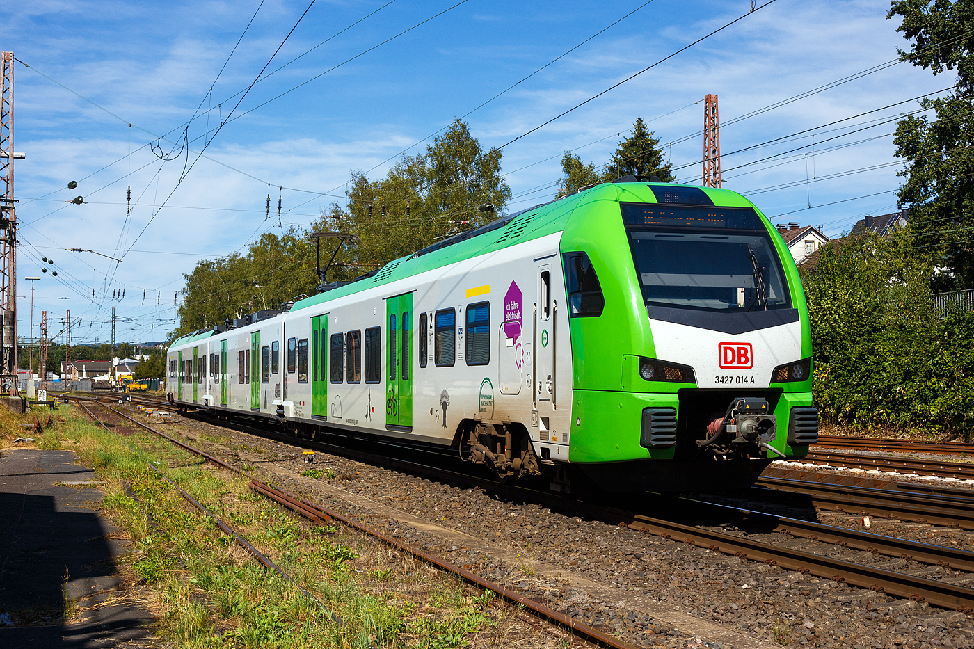 Während links auf dem Stumpfgleis die 185 359-7 der DB Cargo AG wartet, rauscht rechts der für die DB Regio AG – NRW fahrende dreiteilige Stadler FLIRT 3 XL 3427 015 (94 80 3427 015-7 D-STAP / 94 80 3827 015-3 D-STAP / 94 80 3427 515-6 D-STAP) der ZV VRR Eigenbetrieb Fahrzeuge und Infrastruktur, als RE 34 „Dortmund-Siegerland-Express“ (Dortmund - Letmathe - Siegen), von Kreuztal weiter in Richtung Siegen.