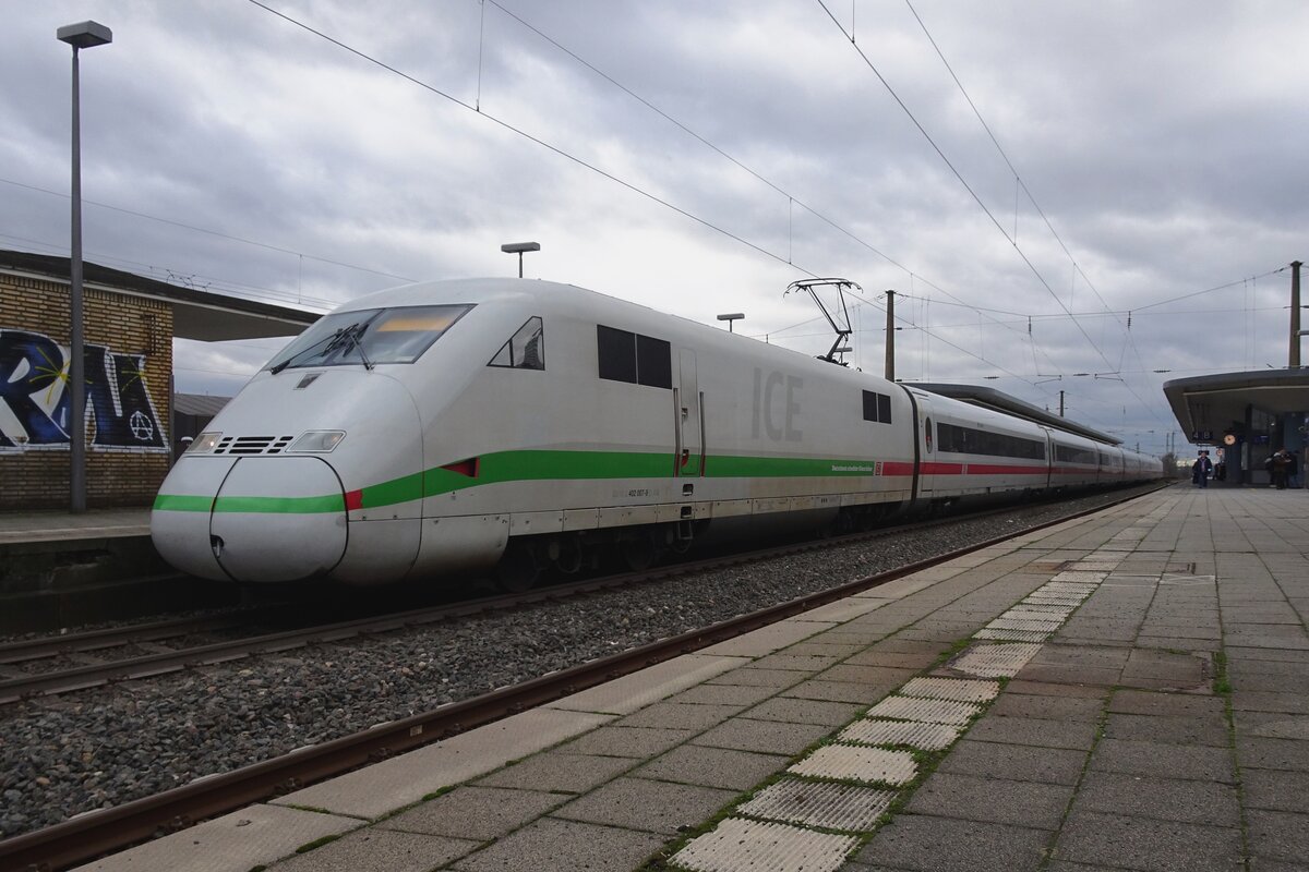 Ein ICE 2 Vollzug (zwei gekuppelte ICE-2-Halbzüge) fährt am 29.12.2016 bei Feucht, über die Neubaustrecke Nürnberg–Ingolstadt (KBS 900), in Richtung Ingolstadt.
