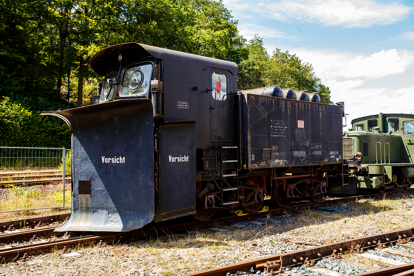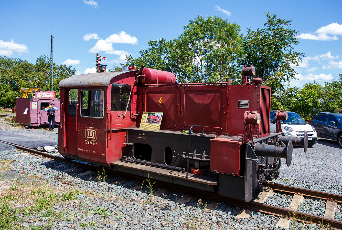 Die Deutz 57513 - eine DEUTZ KS 230 B (A12L 714A) Diesellokomotive ehemals der Bundeswehr, am 02.07.2023 ausgestellt beim Erlebnisbahnhof Westerwald der Westerwälder Eisenbahnfreunde 44 508 e. V. hier war Lokschuppen-/Sommerfest. Die Lok ist Eigentum vom Militärhistorisches Museum Dresden und eine Leihgabe an die Eisenbahnfreunde. In der Lokstation Westerburg findet man eine einzigartige Spezialsammlung von Schienenfahrzeugen der Bundeswehr.