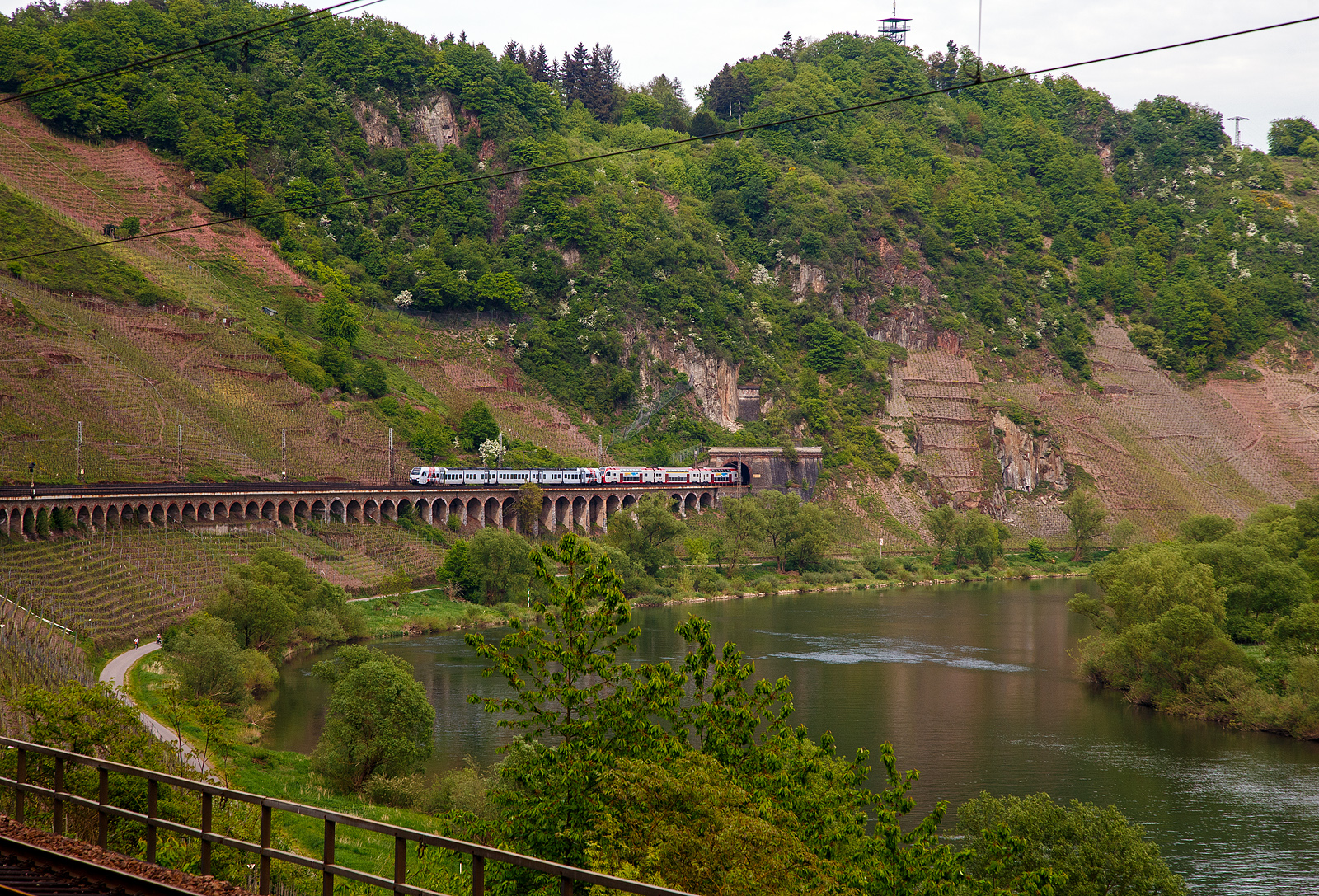 Goldener Herbst: Hier nun im Nachschuss, der fünfteilige SÜWEX Stadler FLIRT 3 - 429 622 / 429 122 als RE 1 "Südwest-Express" gekuppelt mit dem dreiteiligem CFL Stadler KISS 2301 als RE 11 "Benelux-Express" fahren am 01.11.2016 bei Winningen Mosel aufwärts in Richtung Tier. In Trier werden die Triebzüge dann geflügelt, der Stadler FLIRT 3 fährt dann weiter via Saarbrücken und Kaiserslautern nach Mannheim, CFL Stadler KISS 2301 via Igel und Wasserbillig nach Luxembourg.