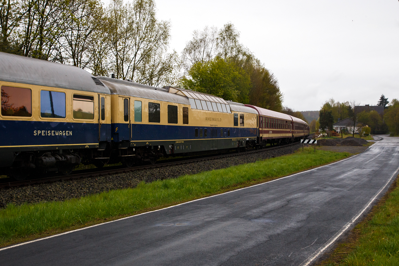 218 191-5 ist am 03.07.2021 mit einem Schotterzug auf dem Weg von Limburg(Lahn) nach Wallmerod und erreicht in Kürze Staffel.