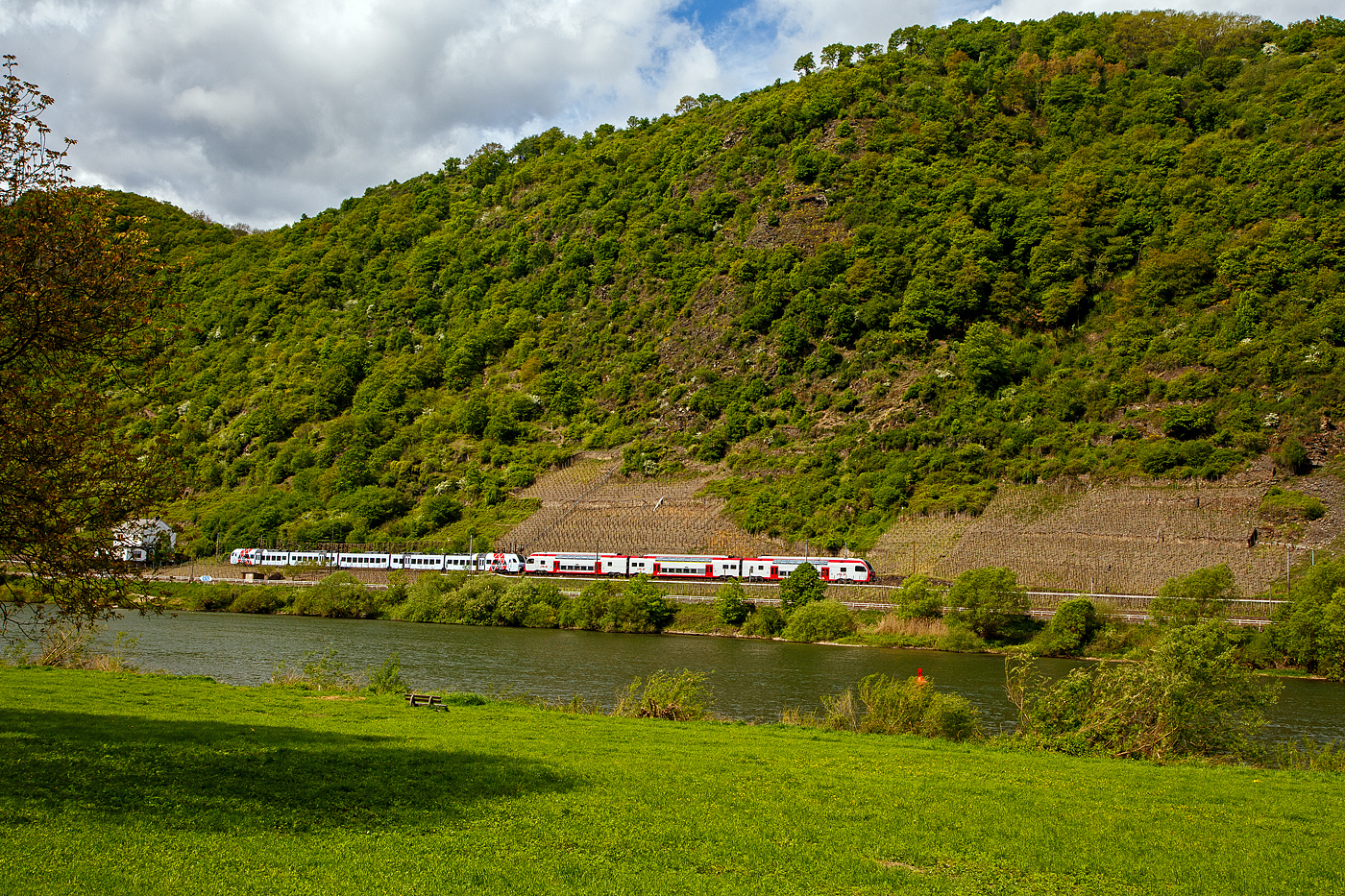 In Trier werden die Triebzüge dann geflügelt, der Stadler FLIRT 3 fährt dann weiter via Saarbrücken und Kaiserslautern nach Mannheim, CFL Stadler KISS 2301 via Igel und Wasserbillig nach Luxembourg.