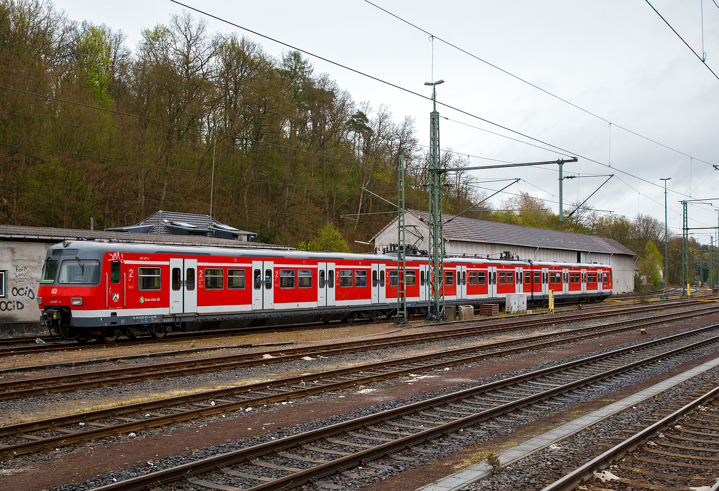 ET 420 (420 457-4 / 420 957-3) der S-Bahn Köln am 22 April 2017 beim Bahnhof Au/Sieg abgestellt.