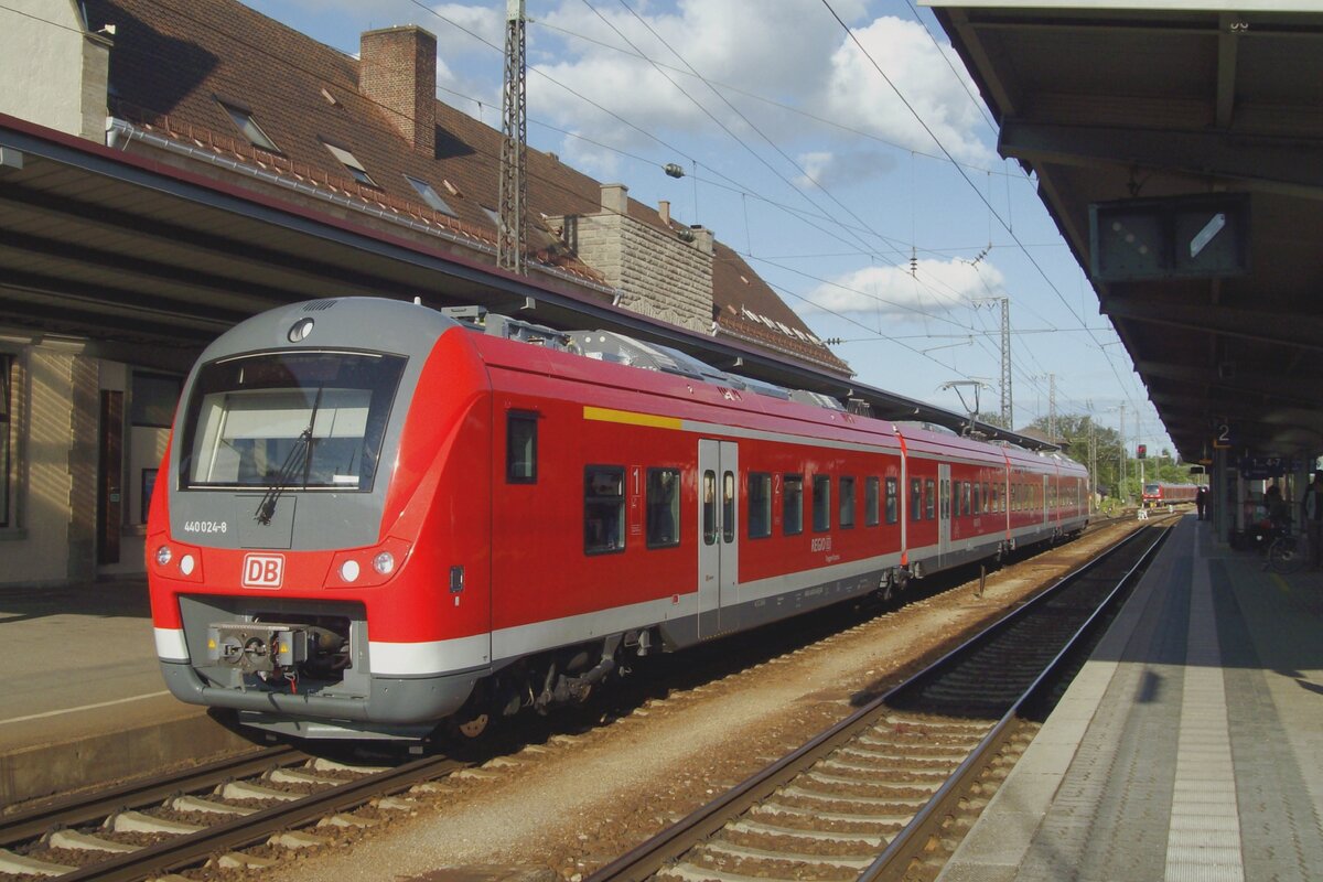 Der fünfteilige Alstom Coradia Continental 440 206-1 „Landau a. d. Isar (94 80 0440 206-1 D-DB) der DB Regio Bayern fährt am 17.06.2018, als „Donau-Isar-Express“ (RE München Hbf – Passau Hbf), von Freising weiter in Richtung Landshut.