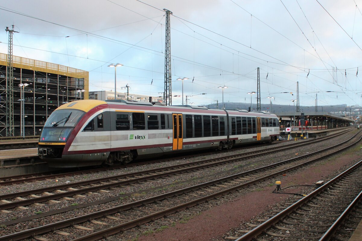 Rechts auf Gleis 6 stehen zweigekuppelte zweiteilige Dieseltriebzüge vom Typ Siemens Desiro Classic der BR 642 der trilex (eine Marke der Länderbahn GmbH), als RE 1 Dresden Hbf – Bischofswerda – Bautzen – Görlitz (D) – Zgorzelec (PL).