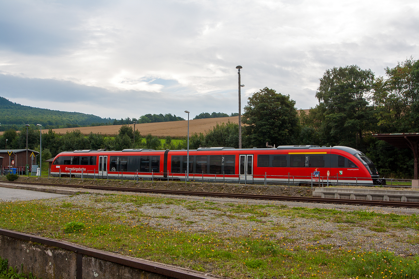 Links auf Gleis10 steht der fünfteilige Alstom CORADIA Continental 1440 206 / 1440 706 der Mitteldeutsche Regiobahn (MRB). Eigentümer ist der Verkehrsverbund Mittelsachsen GmbH (Chemnitz), eingestellt sind die Triebzüge durch die Bayerische Oberlandbahn GmbH, Holzkirchen (D-BOBy). Die MRB - Mitteldeutschen Regiobahn gehört wie die BOB zur französischen Transdev Group.
