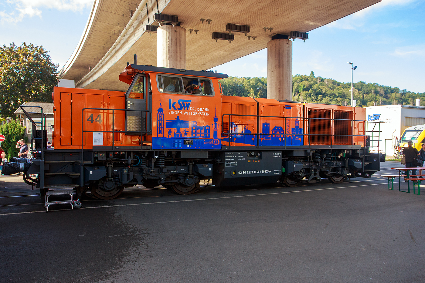 Die 265 022-4 (92 80 1265 022-4 D-DB) eine Voith Gravita 15L BB der DB Cargo AG ausgestellt am 17.09.2023 beim KSW Bahnhof Siegen-Eintracht, hier war im Rahmen der "Europäische Mobilitätswoche" der „Tag der Schiene 2023“ ein Tag der offenen Tür.