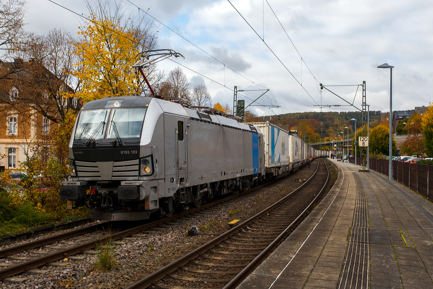 Die recht neue und ecco-rail GmbH (Wien) vermietete SIEMENS Vectron MS 6193 193 (91 80 6193 193-0 D-Rpool) der Railpool GmbH (München) fährt am 16 Oktober 2025 mit einem KLV-Zug durch Kirchen/Sieg in Richtung Köln. Die Vectron MS wurde 2025 von Siemens Mobilitiy in München-Allach unter der Fabriknummer 23558 gebaut und im Juni 2025 an die Railpool GmbH (München) ausgeliefert. Diese Vectron Lokomotive ist als MS - Multisystemlokomotive mit 6.400 kW Leistung und einer Höchstgeschwindigkeit von 160 km/h konzipiert. Sie wurde in der Variante A01 ausgeführt und hat so die Zulassung für Deutschland, Österreich, Slowakei, Polen, Tschechien, Ungarn, Rumänien und Bulgarien (D / A / SK / PL / CZ / H / RO / BG). So besitzt die Vectron Variante MS A01 folgende Zugsicherungssysteme: ETCS BaseLine 3, sowie für Deutschland (PZB90 / LZB80 (CIR-ELKE I)), für Österreich (ETCS Level 1 mit Euroloop, ETCS Level 2, PZB90 / LZB80), für Polen (SHP), Slowakei und Tschechien (LS (Mirel)), Ungarn (ETCS Level 1, EVM (Mirel)) und Rumänien (PZB90).