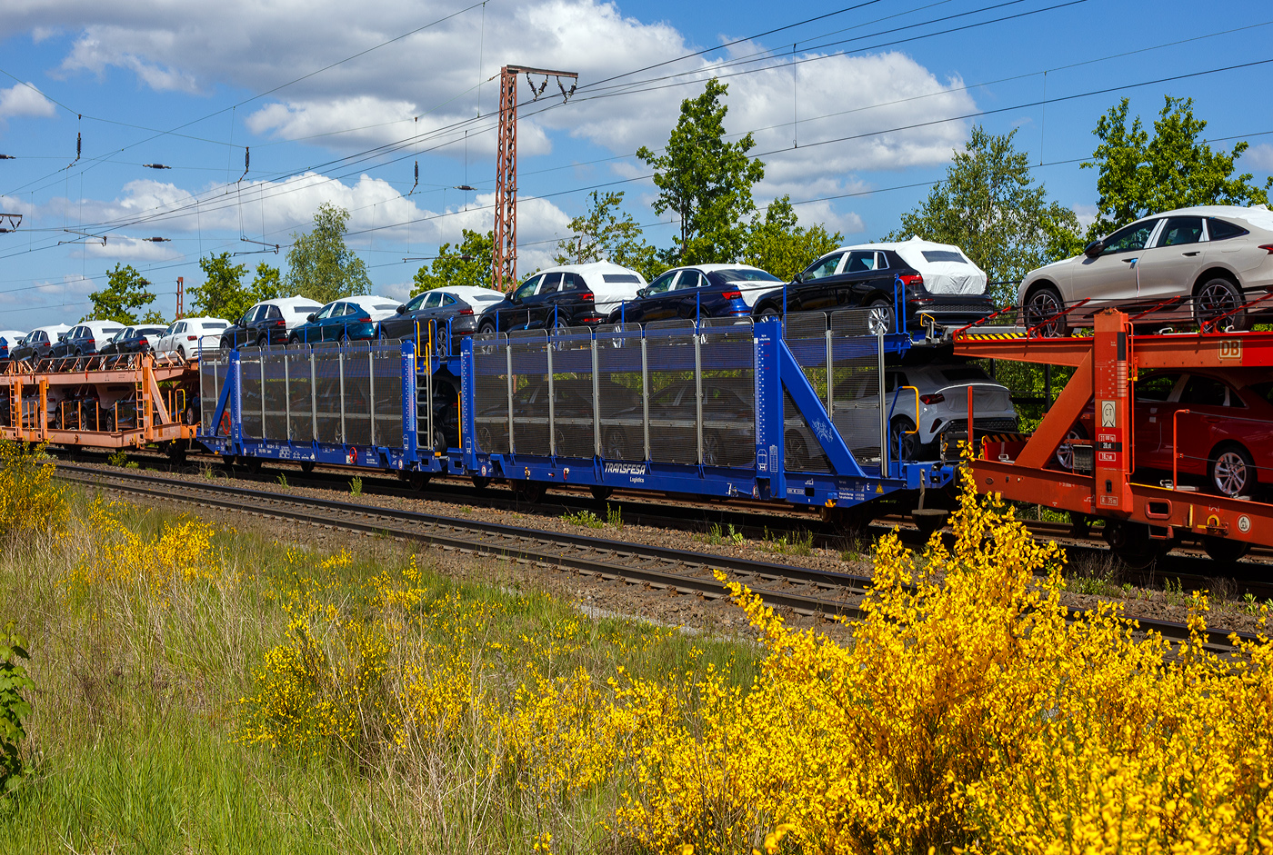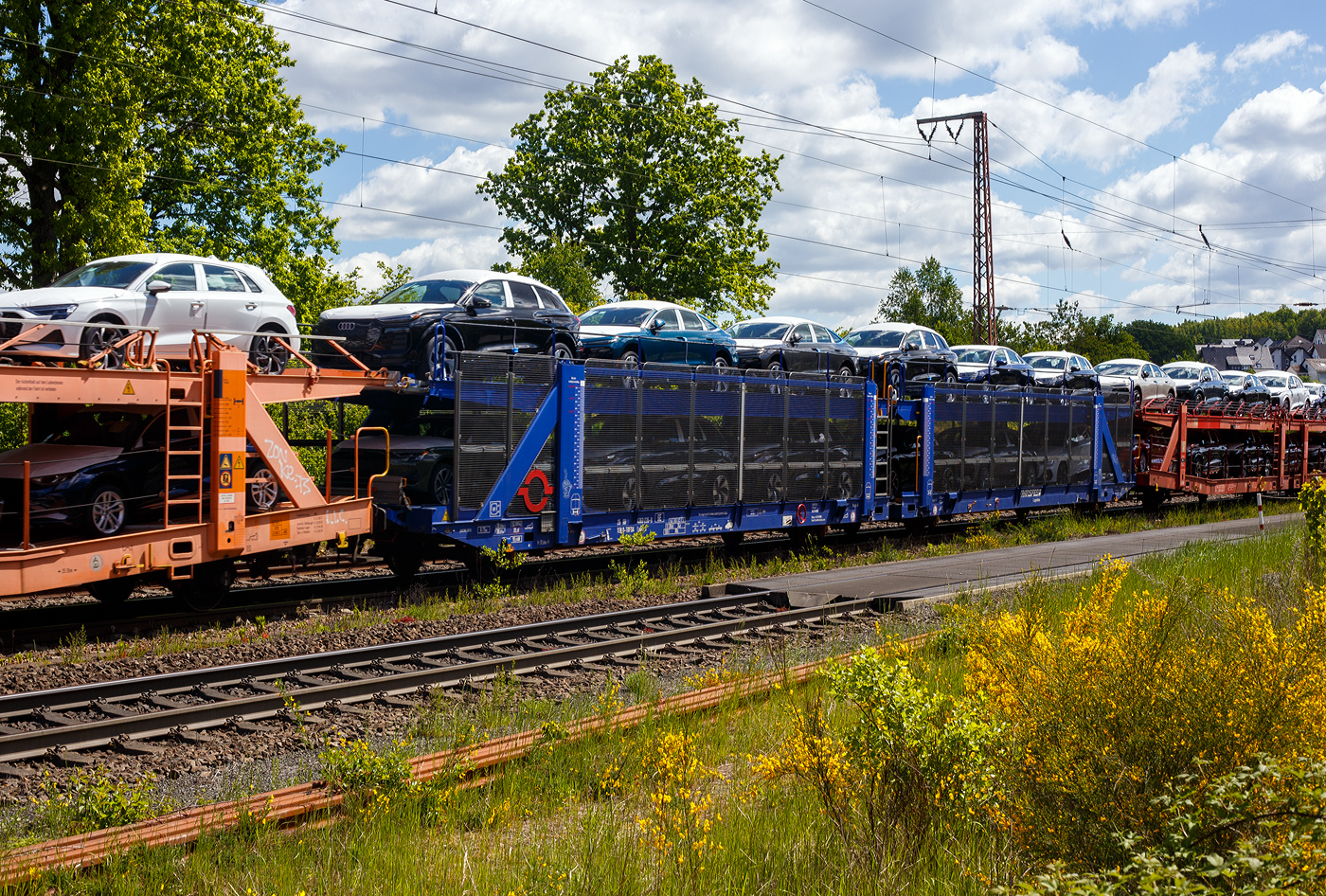 Die Anschrift des neuen DB Autotransportwagens Laaeffrs 560.4 25 80 4382 302-4Ten D-ATG. Der Wagen ist bei einer Testfahrt in Lausanne fotografiert worden.