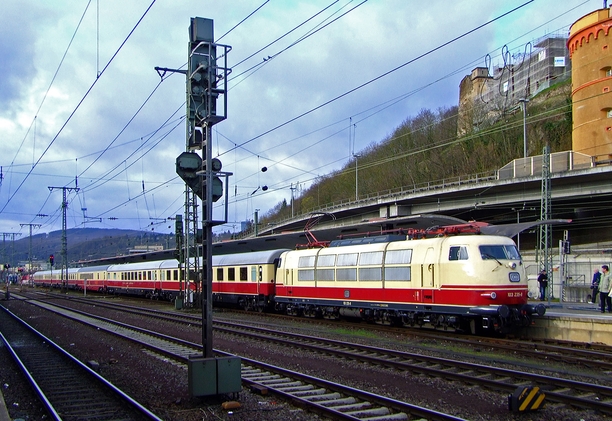 Hier die 103 113-7 (91 80 6103 113-7 D-DB) mit dem TEE "Rheingold" am 18.06.2017 in Koblenz-Lützel.