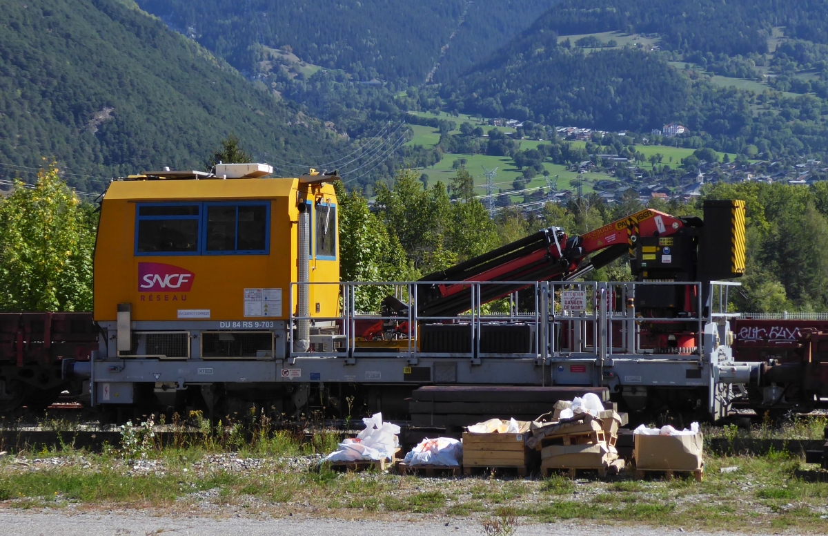 SNCF Reseau Draisine Typ DU 84 RS 9-703/ NR. 99 87 9 485 203-3 steht auf einem Abstellgleis in Bourg St. Maurice