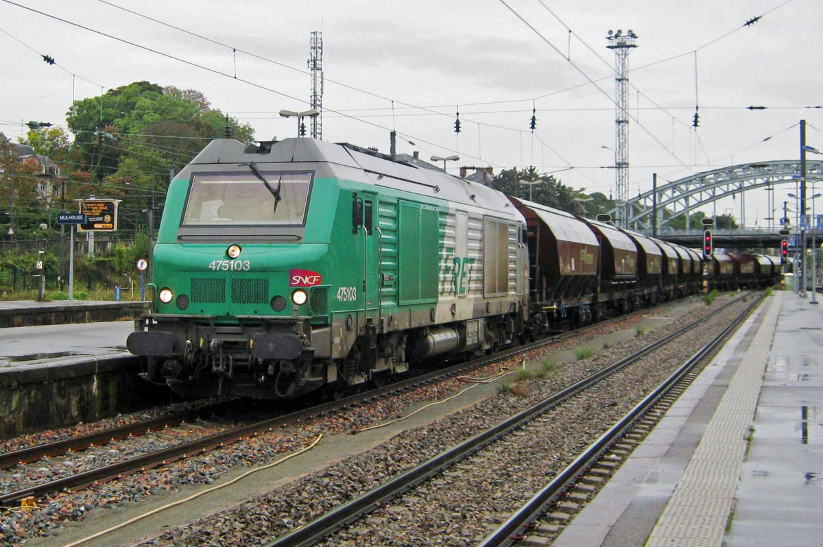Schön ist anderrs, doch leider bekamen wir nur diese eine SNCF BB 75 000 zu sehen. Die 475144 mit einem Güterzug in Mulhouse am 10. Dez. 2013 Stefan Wohlfahrt