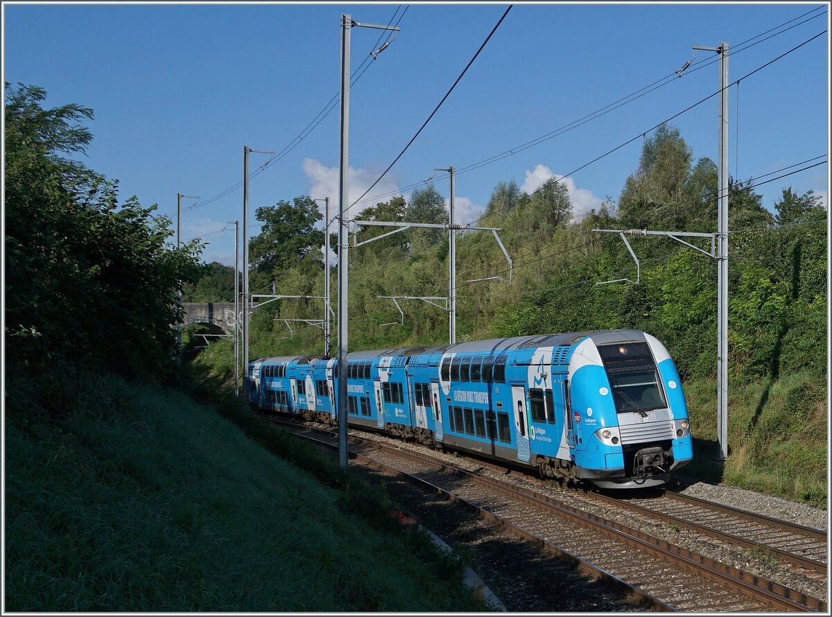 Der SNCF Z 24618 "Computermaus" in seiner SNCF Ursprungsfarbgebung als TER auf der Fahrt nach Genève zwischen Russin und Satigny.