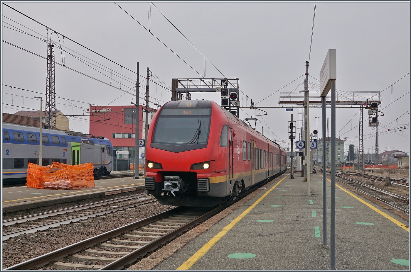Ein FS Trenitalia BTR 813 ist von Torino in Chiavasso eingetroffen und wird nach dem Richtungwechsel in Richtung Aosta weiterfahren. Bis nach Ivrea elktrich, dann thermisch.