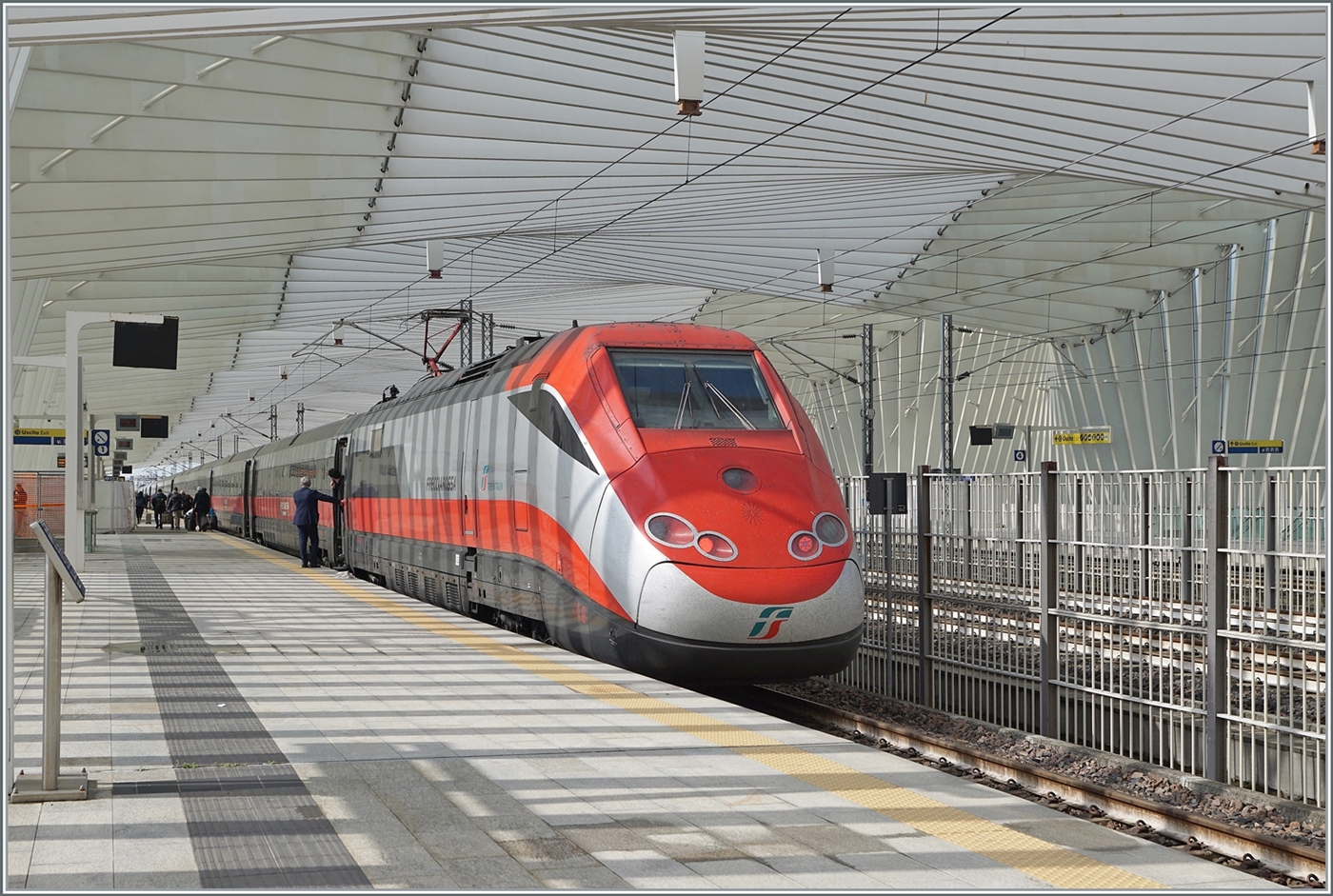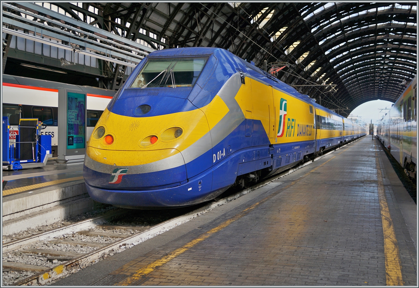 Noch einmal, nun in voller Länge der RFI ETR 500 Diamante 2.0 mit Triebkopf 93 83 2404 648-2 I-RIF in Milano Centrale.