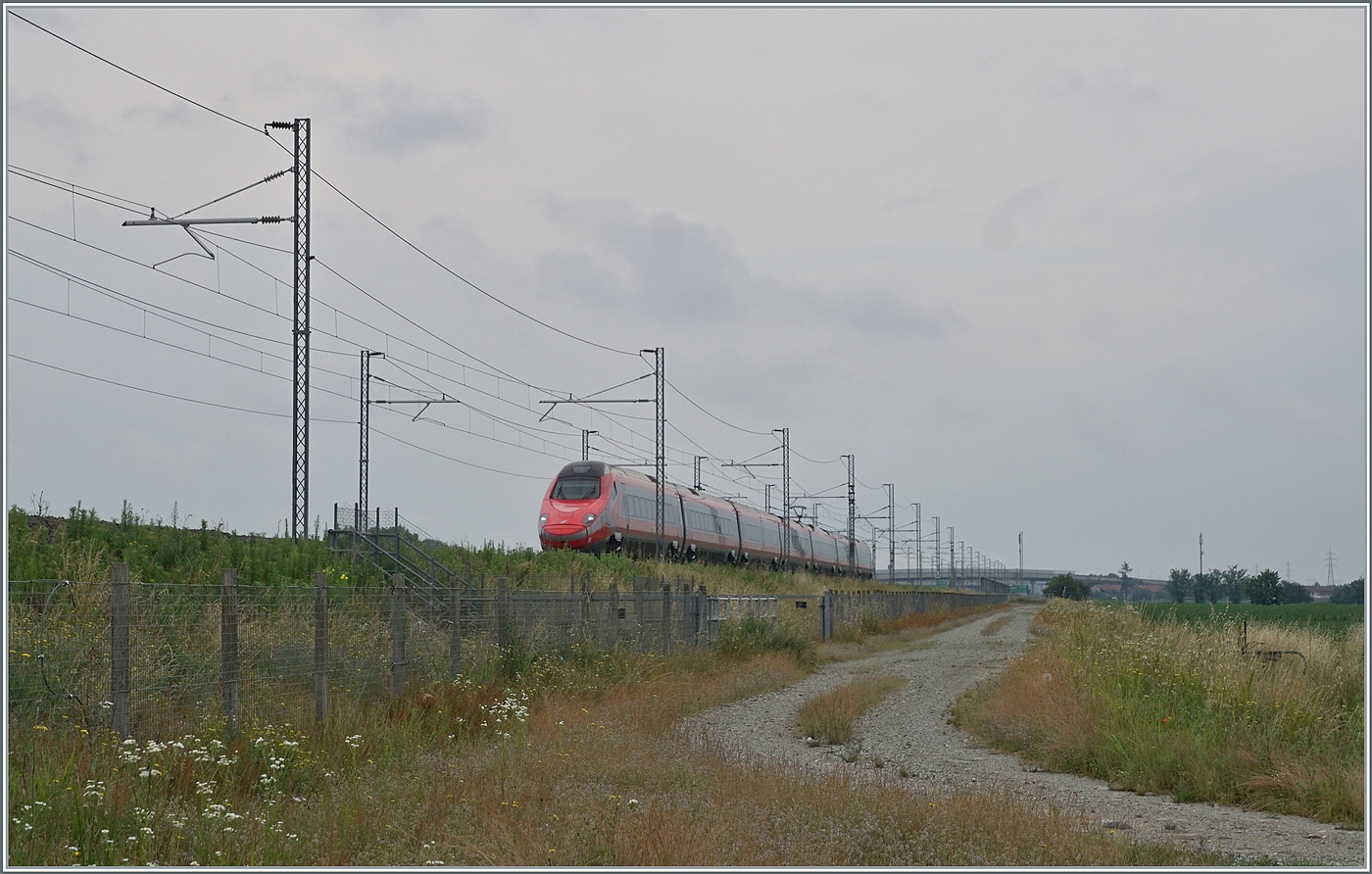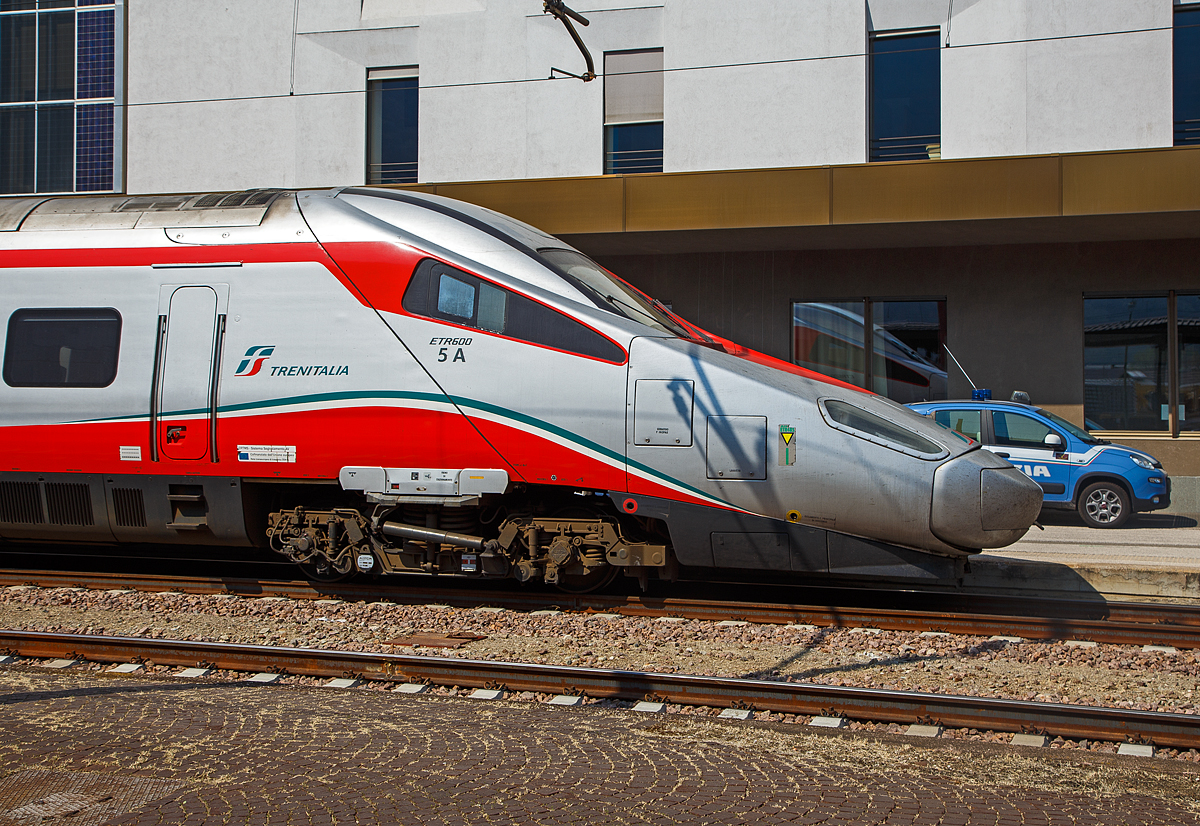ETR 600, 01, Pendolino, hält kurz am Bahnsteig in Verona Porta Nuova, bevor er seine Fahrt fortsetzt. 09.05.2025