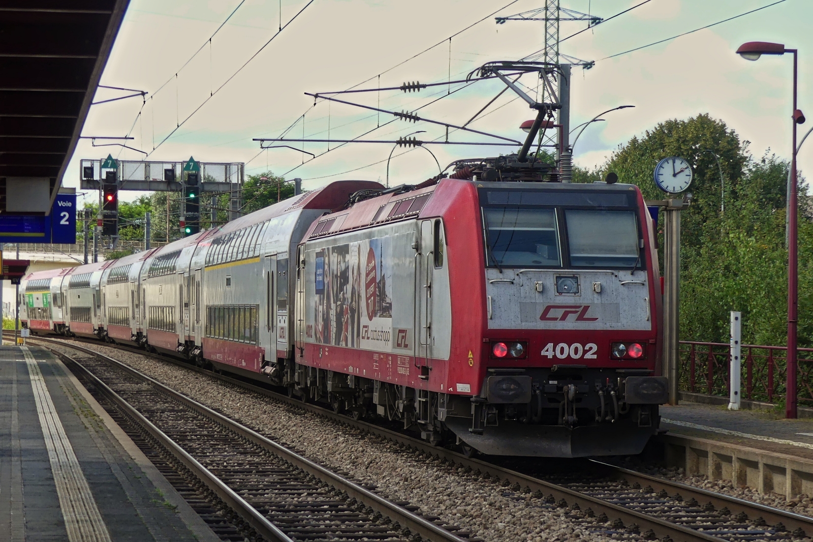 CFL 4002 schiebt ihren Zug von der Haltestelle Lamadelaine in Richtung Rodange, danach weiter bis zu ihrem Endbahnhof Athus. (B). 08.08.2024. Hans und Jeanny De Rond