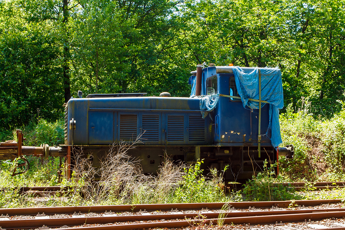 01.10.2023 Dieseltag im Fond de Gras. Frontenvergleich LOK 1806 steht mit Personenwagen auf dem Abstellgleis, Lok 1604 fährt mit ihrem Zug in Richtung Petange daran vorbei. (Hans)