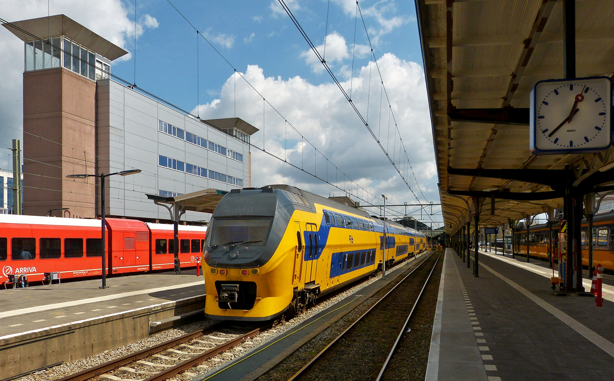 . Alt und neu im Bahnhof von Leeuwarden - Die schönen alten Wartehäuschen aus Holz wurden perfekt ins moderne Design integriert. 04.05.2016 (Hans)