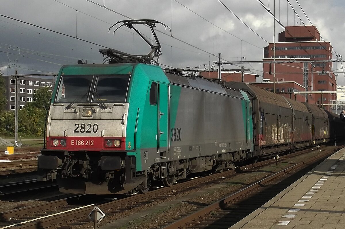 Am 17 Oktober 2014 steht CoBra 2820 mit der Volvo PKW-Teilenzug in Amersfoort und wird nach ein Viertelstunde deren Fahrt nach Utrecht und Antwerpen vortsetzen.