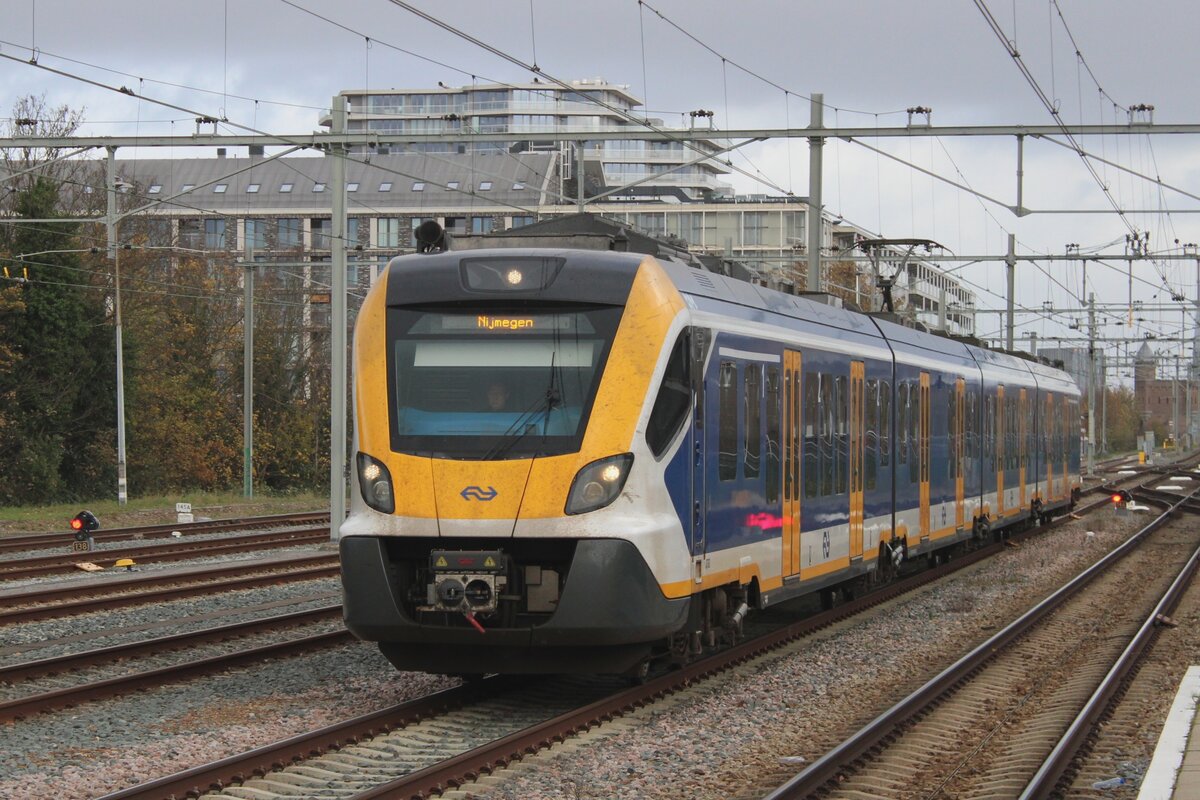 Detailbild des dreiteiligen NS SNG 2351 (Sprinter Nieuwe Generatie), ein CAF Civity Triebzug. Hier am 24 Juni 2025 in Utrecht Centraal.