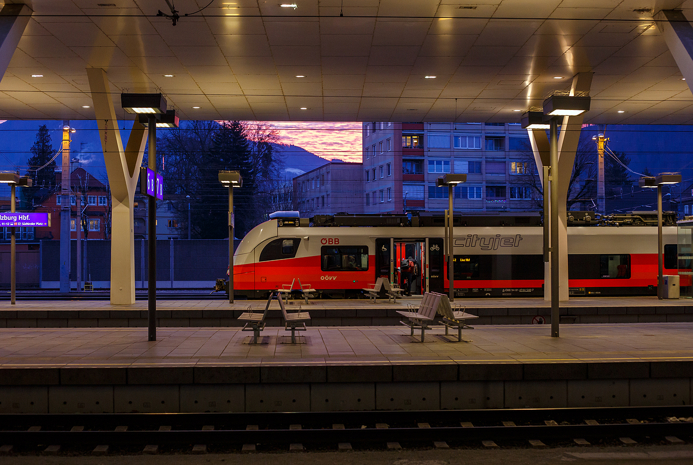 Die „Hercules“ ÖBB 2016 075 (A-ÖBB 92 81 2016 075-1) am 14 Januar 2025, mit dem REX 21 (City Shuttle) von Salzburg Taxham über Neumarkt am Wallersee nach Braunau am Inn, beim Halt im Hauptbahnhof Salzburg.