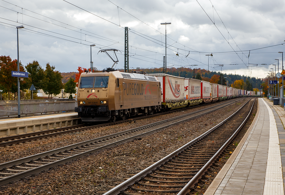 Die an die TX Logistik AG, Troisdorf (zur Mercitalia Group gehörend) vermietete SIEMENS Vectron AC 193 997-4 „Wir bringen die Kraft von 8.500 Pferden auf die Schiene“ (91 80 6193 997-4 D-Rpool) fährt am 15 September 2024, mit der kalten TXL 185 417-5 (91 81 0185 417-5 A-TXLA) der TX Logistik Austria GmbH und einem langen mit FIAT-Nutzfahrzeuge beladenen Flachwagenzug (2 x 2 achsige Flachwageneinheiten), durch den Bahnhof Kirchen (Sieg) in Richtung Köln.