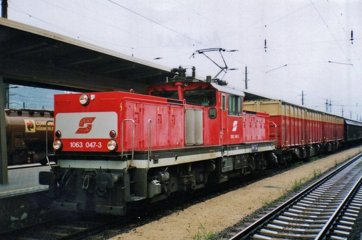 Am 27 Mai 2002 durchfahrt ÖBB 1063 019 Feldkirch mit ein Guterzug von Buchs SG nach BLudenz.